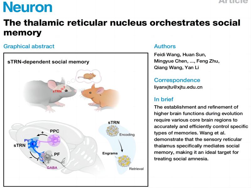 Neuron:西安交大李燕团队揭示丘脑网状核调控社交记忆的新神经机制